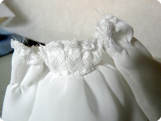 レースを折りたたみながら縫うのも、どうしたら上手に縫えるのかまったくわからなかった。