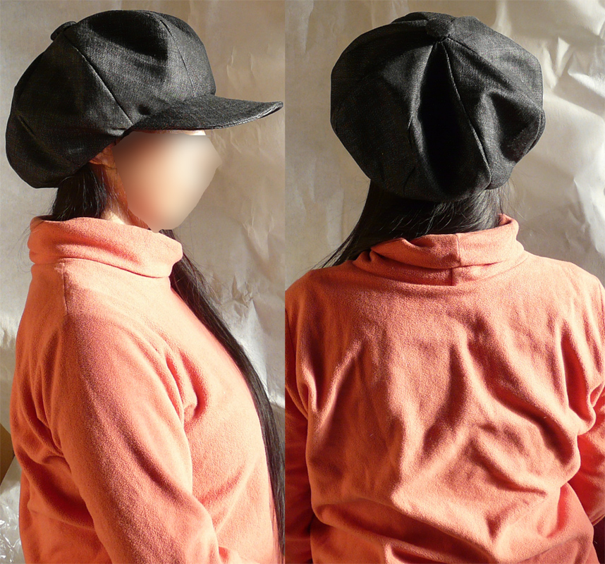 生地:ブラックデニム(桃太郎ジーンズ 岡山中畦店)11号帆布ぐらいの厚さ 附属:グログランリボン 紺 1.2cm巾×10m 315円(手芸ナカムラ)、厚手接着芯 白 ポリエステル 120cm巾×1m 380円(手芸ナカムラ)、キングスパン 60番/3,000m #402黒 300円(ボビン)、くるみボタン 特大直径27mm(ダイソー) キャスケットの試作です。 しばらく連載します。 激安のデニム地です。 デニムのいいところは、クラウンに接着芯がなくても、意外に形ができるところ! 試作だし、接着芯代を節約したいので、デニムでとりあえず試作してみることにしました。 ブリム芯に、本ではプラ芯1.0mm厚を推奨していましたし、Haro*Behでは、0.8mm厚(23cm×32cm 110円)を販売しています。 手芸ナカムラ(1.0mm厚 約25cm巾×33cm 105円)や、Advance Net(1.0mm厚 100cm巾×100cm 500円)でも買えます。 でも、縫える腕がないので、接着芯にしました。 接着芯には、3種類を試してみました。 ●ダンレーヌ SX3…このデニムには薄すぎ。パリッとしている。 92cm巾で、770円/mぐらい。 ●手芸ナカムラの厚手接着芯…自立するカバン向き。 厚みは3種類の中でいちばんあるが、いちばん柔らかい。パリッとした硬さがない。 ブリムの形状は保てるので、自分や身内用にガンガン使おうと思う。(なんといっても安い! 思う存分使える) でも、他人へのプレゼント用には、使わないかな。 120cm巾×1mで380円。 ●バイリーン アイロン接着芯「シャープ芯」アツ…しっかりした硬さがあり、もっとも適している。 45cm巾×2mで700円ぐらい。 ということで、今回の試作のブリムはすべて手芸ナカムラの厚手接着芯を使っています。 糸について。 デニムだし、厚手接着芯のブリムだしで、本来は太い番手の糸を使うべきだと思います。ステッチも、そのほうがきれい。 ですが、自家用で間に合えばいいので、60番ですべて縫っています。 実際、10号ぐらいのキャンバスで自立型のバッグをいくつか縫っていますが、60番で困ったことはありません。(針は太い番手に変えますが)。手芸店の方には、糸が細すぎて切れてしまう、強度がヤバいとご教授いただきましたが、未だ糸が切れて困ったことがありません。 自家用で、太い糸をわざわざ買うのがもったいないので、今回もすべて60番で縫っています。 悪しからず。 ダイソーのくるみボタンについて。 105円でくるみボタン製作キット(ボタン4個入り)を買った後は、補充ボタン20個以上が105円で買えるというお得品。 ただし、デニムは厚すぎるので、使えません。 そこで、薄いコットンでとりあえずくるみボタンの形を作り、その上からデニムをかぶせて、端を手縫いで絞ってごまかしました。 ただの飾りボタンだから、この程度でも強度は充分でしょう。 で、肝心の、この帽子ですが。 8枚はぎのクラウンの、基本的なキャスケットです。 本で見たときは、ぷっくらした、かわいいキャスケットだと思ったのですが、クラウンができあがってみると、横広がりの巨大ベレー帽……orz 収拾がつかねー……と正直思ったものですが、全身鏡で見ると、まあ、気になるほどではないかな。 深くかぶれるので、今の時期は温かいです。 ただ、クラウンがたっぷりと深いので、運動時にはブリムが目を隠してしまうときがあり、運動には向いてないかな。 PR