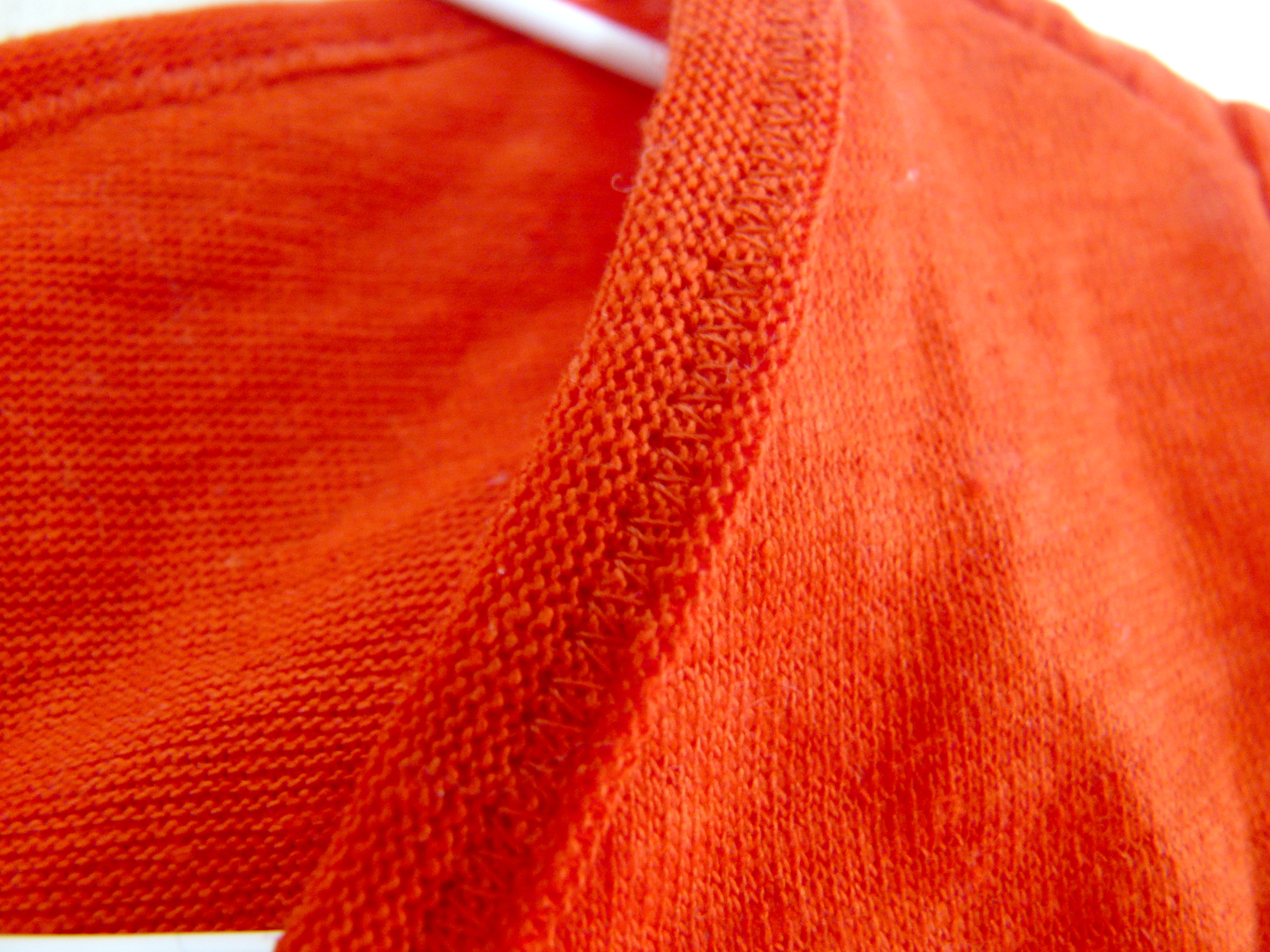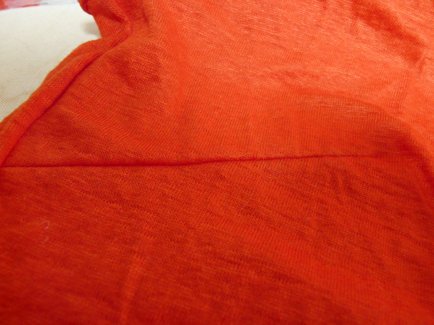 先月、ロックミシンを買いました。 衣縫人BL57EXS。 トリムビンは現在使っておりません。なぜなら、高さが出てしまって、専用クリアテーブルの脚も長くしなければならなくなり、長くした分だけ不安定になってしまうからです。 今までは家庭用ミシンの端かがりで間に合わせていましたが、シフォンやリネンガーゼやジョーゼットやキュプラニットの裏地などを使ったりしていると、もうね……。 とりわけ、キュプラニットは伸縮するのでシュプール+レジロンでは不安があり、エクシードで伸縮縫いかジグザグ縫いをしたのですが……縮むのですよ……。 ハトロン紙にはさんだり、紙やすりや、インベルを2枚貼りつけたもの等を使ったりして、思いつく限りの方法を試しましたが……もうムリ。限界。 衣縫人で縫ってみたら、なんでもなく、さっと終わりました。 実は、ロックミシンは中学以来です。中学のときも、先生が糸などをぜんぶセッティングしてくれて、生徒は端かがりするだけでした。 なので、使い方はまるでわかりません。 糸のかけ方もわからないので、いろいろ自動なものでなければ使えないだろう、と衣縫人か糸取物語と考えていました。 届いてみたら、やっぱりわからない。わからなすぎて、調べるのも億劫。 付属のCDが役立ちました。 動画を見たらイメージが湧き、理解しやすかったです。 授業みたいにメモをとったりして。 これからは、これ一台でニットが縫える! と思ったのですが、実際に縫ってみると、意外にそうでもありませんでした。 まず、胸ダーツ。 これはシュプール+レジロン。 それから、写真にはないけど、襟元のギャザー寄せもシュプール。 もしかしたら、ロックミシンで縫うやり方もあるのかも知れませんが、知らないので直線ミシンで。 薄地でやわらかいので、家庭用ミシンより直線ミシンのほうがラク。 ここはロックミシンで。 ニット裾まつり押えを使って。 今まで、エクシードの伸縮まつりを使っていたけど、伸縮度がまるでちがいます。 衿ぐりと袖ぐりのパイピング。 エクシード+レジロンでジグザグ縫い。 簡単なタンクトップなのに、3台総動員してしまった……。 過去にも作ったことがあるので、家庭用ミシンだけでも縫えるのですが。 PR
