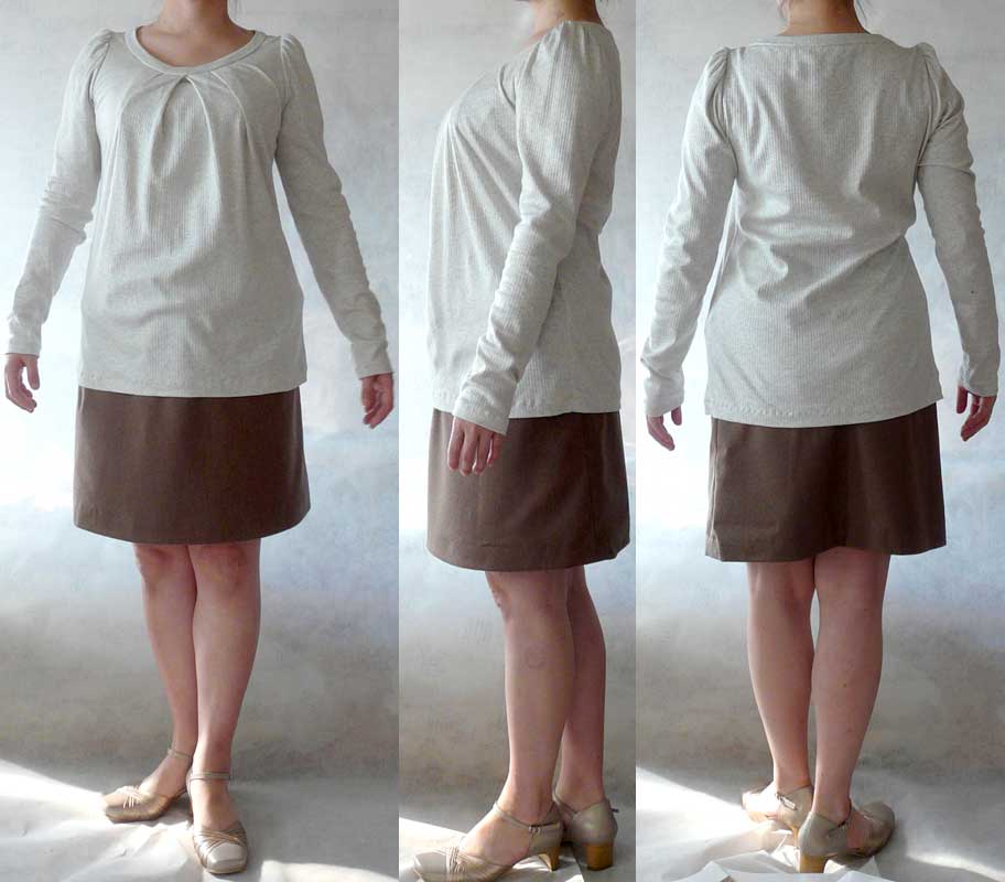 生地:綿テレコ 杢グレー 108cm巾×150cm ¥609/m(服地のアライ(日暮里)) アレンジ: なで肩補正 0.8cm 幅出し +6.0cm