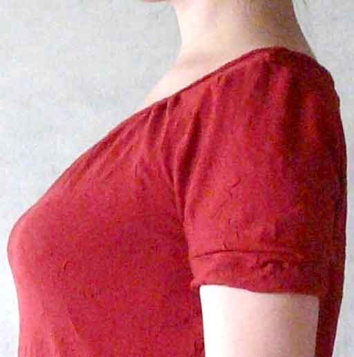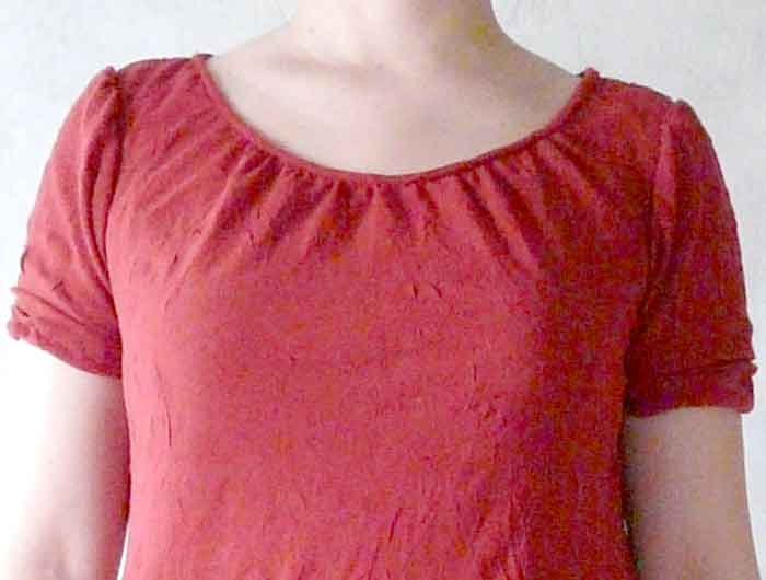 デフォルトでは、7分袖で、裾にゴムがたたいてあり、襟ぐりも深かった。