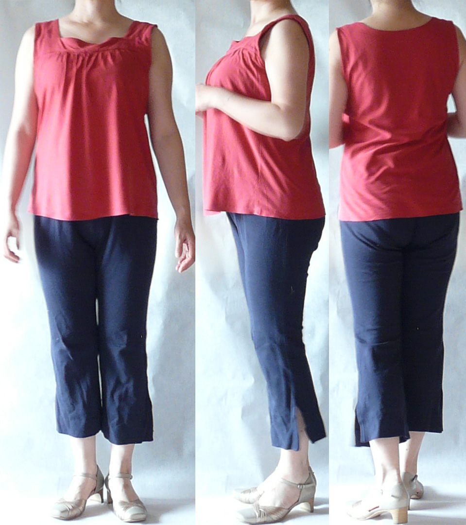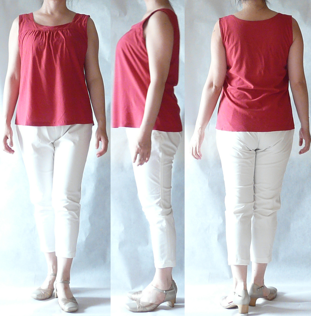 生地:ドライハイテンションニット< 1.5m/2mカット> 春夏向き オフホワイト - カワイ繊維 アレンジ: Dupon2010 40size 七分丈 裾で4cm幅カットになるよう、膝下のラインを書き換え。 ベルト部分はゴムベルト用の4cm幅ゴム。 前両脇にポケット。 ファスナーなし。 トップスは70011です。 何度も縫っているデュポン2010ですが、 今回はびよんびよんストレッチ生地を使用しています。 腿の後ろのシワって、しょうがないんですかね? 正しいシワがわからないので、もやもやします。 本当は、この生地はスリムパンツの型紙で作りたくて、セールをずーっと待っていたのですが、いつも対象外だったので、手持ちのDupon2010で間に合わせました。(ほかに、布帛のサブリナパンツの型紙もセール待ちですが、こちらもいつも対象外) ミニワンピの下に履くつもりで、ファスナーなどの飾り(?)は省略。 生地は肌触りのよいドライ生地で、よく伸びます。白い薄地なので透けます。 ミニワンピの下に履くつもりだったから透けても気にしなかったのだけれど、フレアパンツを履けばふつうにパンツとしても使えるんじゃ? ドライ生地はマジで気持ちいいです。 こちらは厚手のニット生地で縫っています。 若干幅を細めに作っているのですが、このお尻のシワって、どうなの? 不恰好なシワなのでなんとかしたいのですが、どうしてこのようなシワになるのかがわからないので、どう補正したらいいかもわからない……。前ワタリを少し削って、後ろワタリを足せばいいのかな? このパンツはお尻周りは隠して穿く限定なので、少しは安心っちゃ安心なのですが……。 腿にシワがありません。これはこれで、恥ずかしいかも? 型紙通りにスリットを開けました。その結果わかったのは、スリットは開けないほうが私向きだということです。 スリットを開けてしまうと、幅が太く見えるので、寸胴に見えるんです。足首だけ華奢に見える気もしますが、脚全体が太く見えてしまう。 スリットがなくても動作性には問題ないので、今後は閉じることにしました。 これはウェーブにありがちな話だと思います。 ストレートはスリットを開けたほうがよいだろうし、ナチュラルはむしろ、広がったほうが。 PR