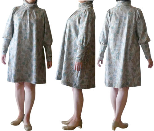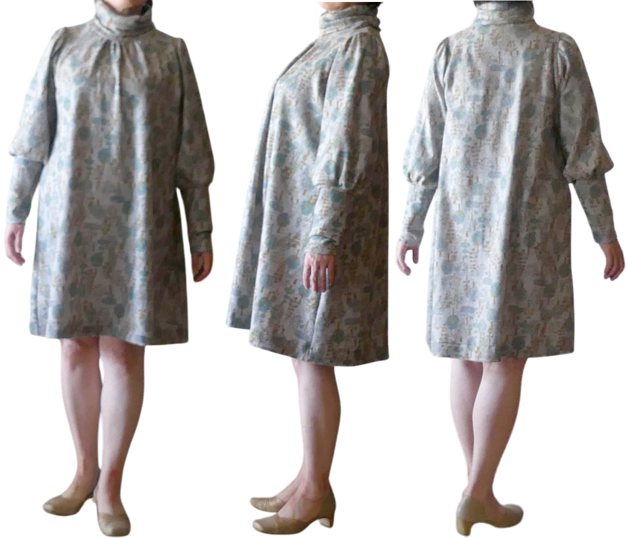 型紙:タートルAラインワンピース Tina~ティナ size38 ¥2,530 (Annee-Patterns) https://annee-patterns.com/dresses/pdf_8Tina 生地:ウール混中厚地 アレンジ: ・幅出し12cm ・襟下のピンタックをギャザーに変更 ・「LR70059 クルーネック長袖 T」の袖20cm移植 LR70059 クルーネック長袖 T(Annee-Patterns) https://annee-patterns.com/cutandsewn/pdf_LR70059