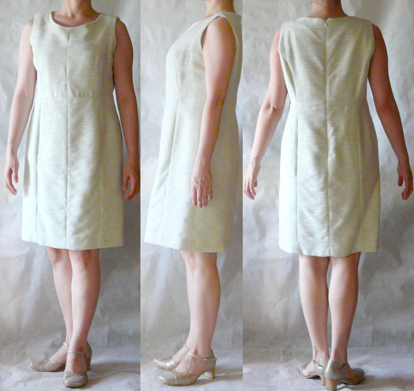 生地:ファンシーツイード 140cm巾×1.2m 2142円(服地のアライ 値引き後) アレンジ: 巾出し +2cm B補正 +2cm 後ろ身頃丈 4.0cmカット アームホールの下部分を、高さ1.5cmふさぐ 肩先 2cmカット 襟ぐり 8Hemineのオプション襟を参考に変形 アレンジをいろいろしていますが、要するに大失敗して、このままでは着られないから、アレコレいじった、という……orz ANNE-PATTERNのサイズ表のページにある補正のアドバイス文が変更されていたので、「なるほど! サイズを大きくして、肩先をカットすればいいのか!」と、それを参考に、安易な方法にチャレンジしてみたのですが。 撃沈。(ええ、フィリピン海溝に真っ逆さまですとも) これまで通り、38sizeから補正したほうがいいことが、イ★ヤになるほどわかりました。 なぜなら、ウエスト位置も、襟ぐりも、アームホールも、40sizeは、私には大きかったからです。 お気に入りの布で気合い入れて縫ったんですが。 ウエスト位置が、おかしい。 襟ぐりと肩幅のバランスが、おかしい。 アームホールがデカすぎて、ブラ丸見え。 肩先をカットしてもカットしてもカットしても、肩が出てこない。 糸をほどいて縫い直し、アームホールにいたってはどうにもならず、パーツを切り直し。 それでも、やっぱりバランスがヘン。 すごーく気に入った色で、鋏を入れられなかった生地ですが……着る機会あるかなあ……orz あ、アネージさんの補正解説のせいで失敗したのではないですよ(汗) アネージさんのはいつも勉強になるのですが、今回も勉強になりました。 生地のアップはこちら。 パステルグリーンに、白い太い糸が通っていて、風合いはありますが硬い生地です。 シンプルなデザインで本領発揮、みたいな。 PR