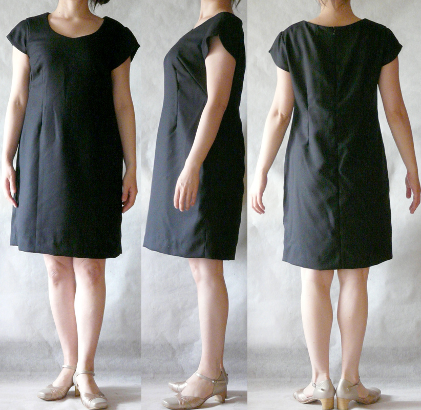 生地:ウール、ポリ混 黒に近い紺の綾織りスーツ地 140cm巾 ¥1700/m(日暮里 服地のアライ) 裏地:キュプラ 110cm巾 アレンジ: 幅出し8cm なで肩補正0.8cm、 反身体補正2cm 襟ぐりはオプションのアレンジパーツ使用。