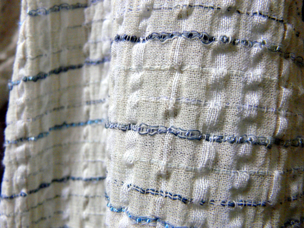 生地:綿リップル 140cm巾×1.2m ¥1200/m(日暮里 服地のアライ 値引き価格) アレンジ: 幅出し6cm 反身体補正4cm 肩先1cmカット 襟ぐりはオプションのアレンジパーツ使用。 仕事の打ち上げ会のために作りました。 とにかく体調が悪いので、ワンピかパンツしか着られない。 「暑いし、改まりすぎないけど、少しだけおしゃれに」という希望を伝えたら、アライさんの店長さんが「これはどう?」と出してきてくださいました。 いつも、こんな買い方してます・・・ 用途と気分をお伝えして、見繕ってもらうという……。 透けるので、中にキャミドレスを着ました。 ファスナー無しでかぶりで着られるので、土曜に生地を買って、日曜に縫って、月曜に着ていけました。 失敗したのは、胸ダーツ。 反身体補正で胸ダーツを増やすのが、難しい。試行錯誤中。 失敗その2。 洗濯したら、思いっきり丈が縮みました(笑) 幅はいいんですけど。 洗濯後はアイロンでひたすら伸ばします。 汗ばむ季節に、綿リップルは気持ちいいので、もう何度も着てます。 生地のアップはこちら。 縦にリップルが入っていて、横のブルーの太い糸には少しラメが入っていて、ところどころ光り、品がいいです。 PR