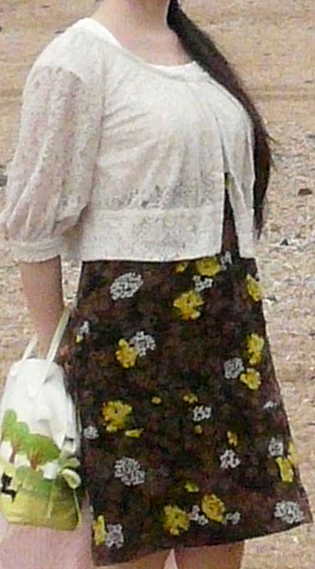 生地:レーヨン、ポリ混のレース生地 128cm巾ぐらい?×1.2m 800円/m(服地のアライ)