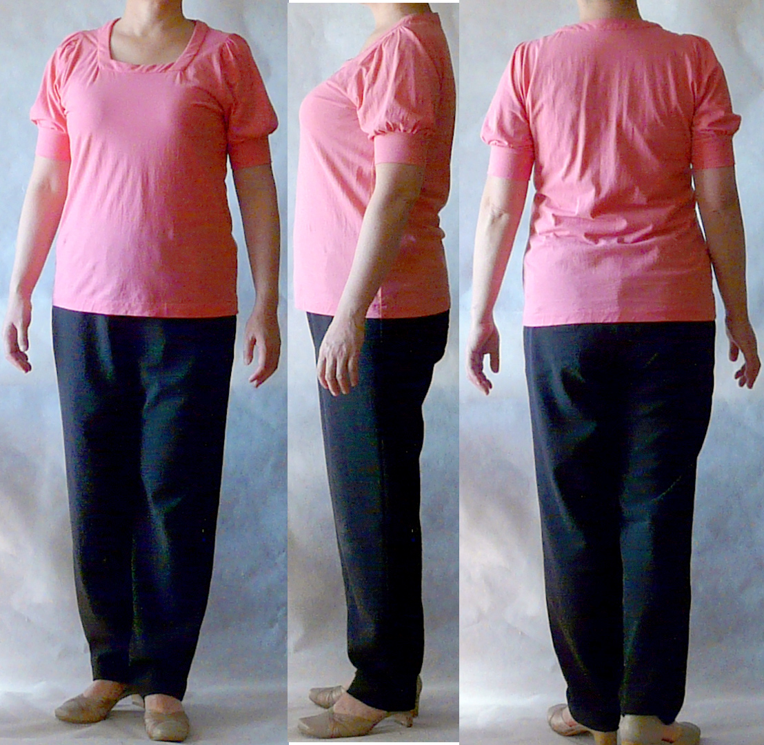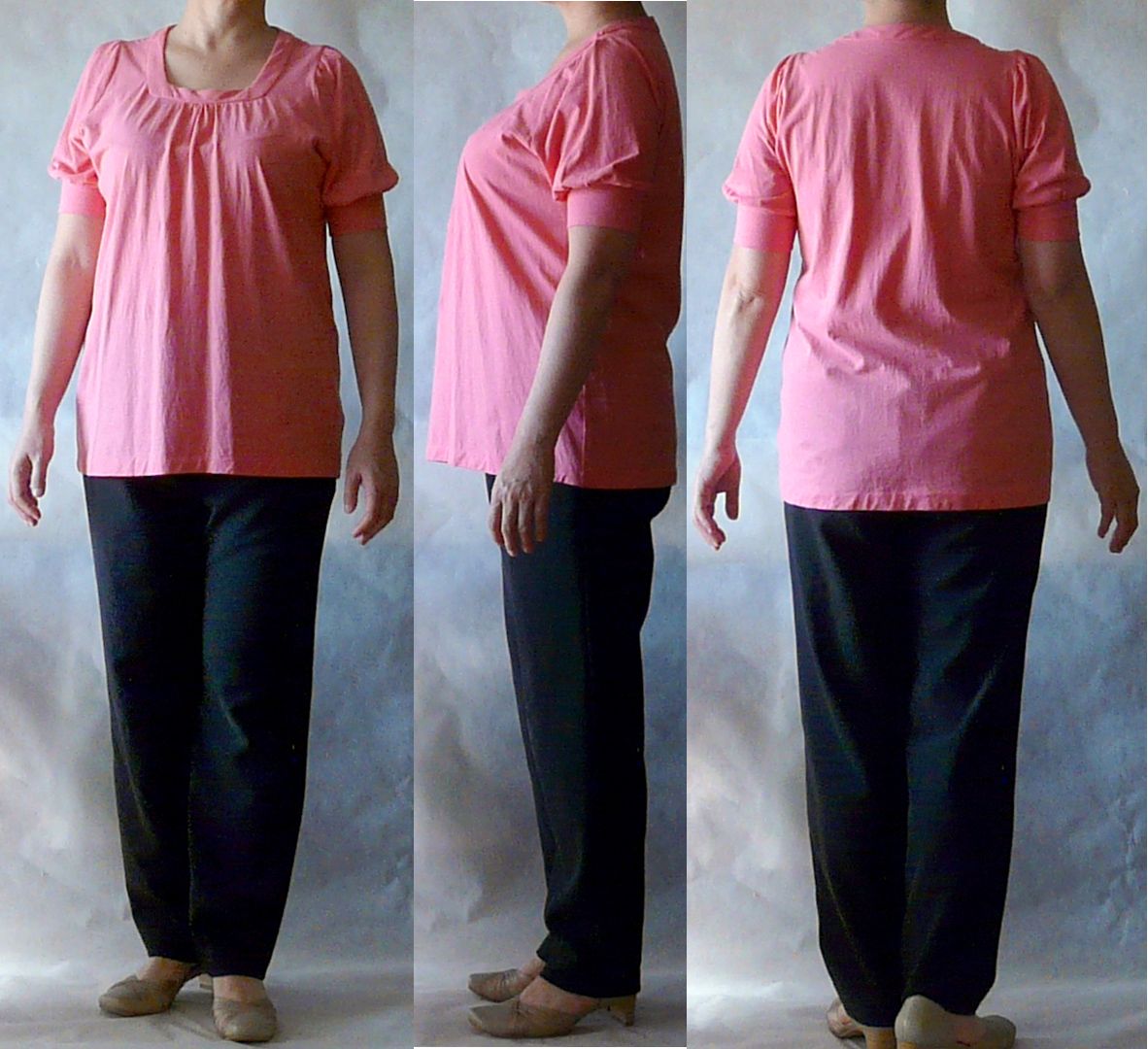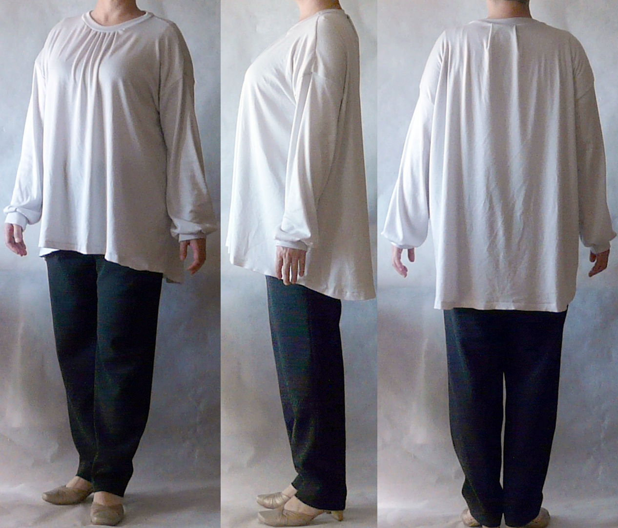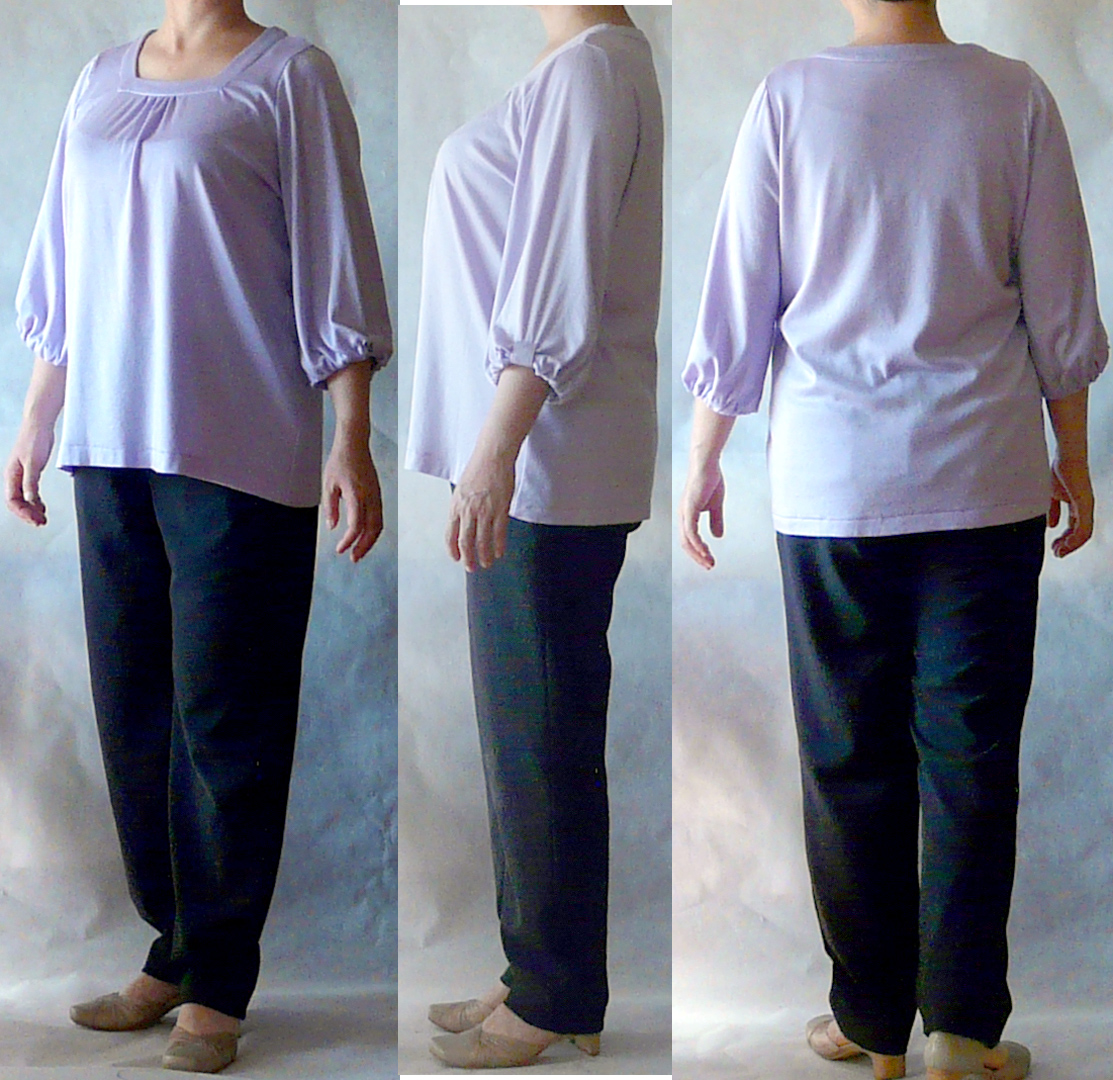 アレンジ:襟ぐりを1cm内側に移動。衿ぐりタックプルオーバー 735の袖を移植。